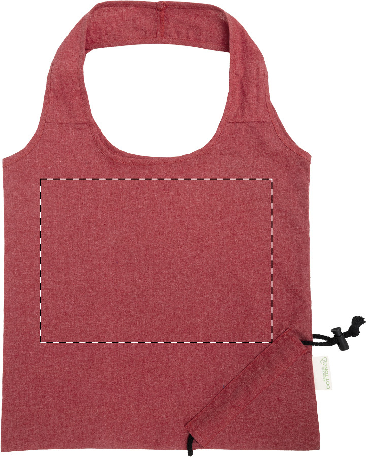 Faltbare Einkaufstasche aus 70 % recycelter Baumwolle und 30 % RPET-Polyester, 140 g/m². Mit Label recycelte Baumwolle.